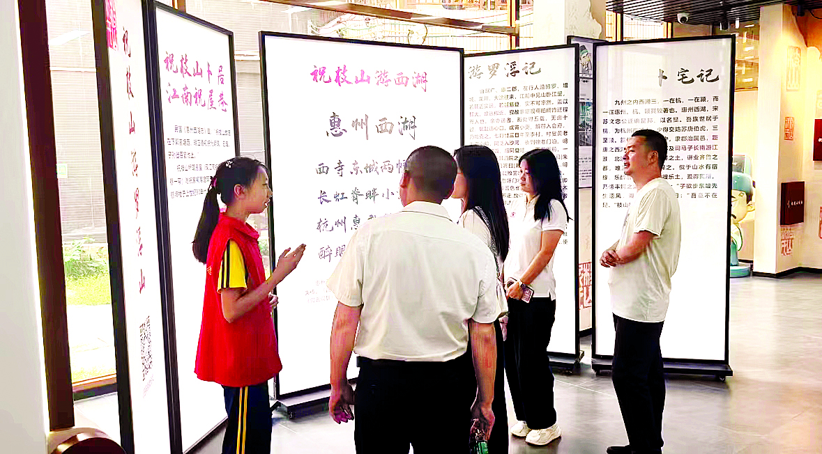 惠州日報訊 (記者彭紅霞 通訊員呂嘉琪 張亮)“西寺東城兩幅圖,長虹脊畔小浮屠。杭州惠郡都游遍,醉眼時將做石湖。這是祝枝山寫的《惠州西湖》,他把惠州西湖比作蘇州的石湖,充分表達了祝枝山對惠州西湖的深厚情感……”近日,在惠城區(qū)江南街道祝枝山館內(nèi),新上崗的小講解員正以飽滿的熱情和自信的姿態(tài),向來訪的游客和市民介紹祝枝山館的歷史與文化。這批小講解員用實際行動,詮釋了“爭做新時代好少年”的內(nèi)涵,為祝枝山館增添了一道亮麗的風景。
