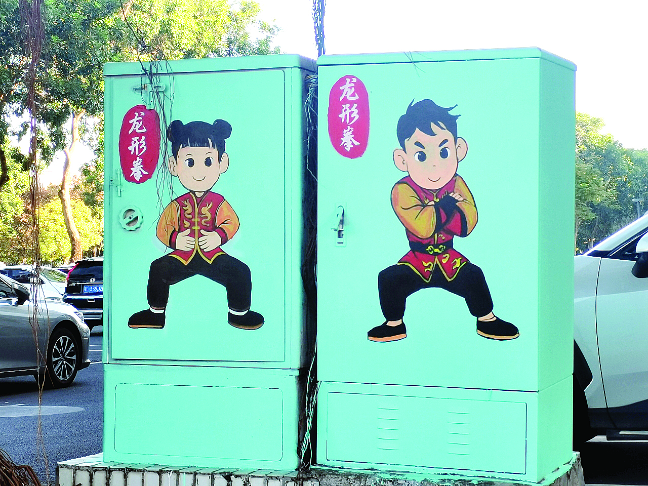 弱電箱上的龍形拳卡通形象。惠州日報(bào)記者彭紅霞 攝