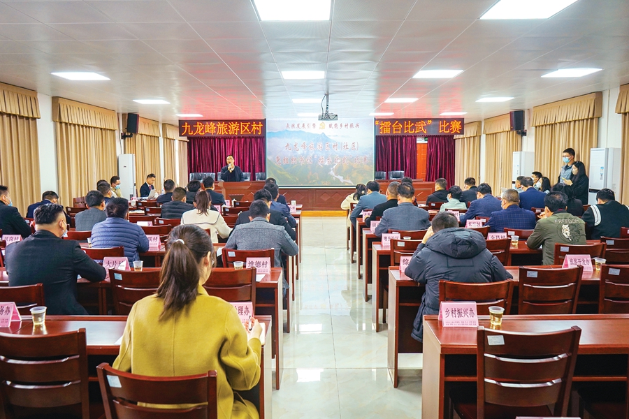 “我們村將依托鄉(xiāng)村振興戰(zhàn)略,積極壯大集體經濟,大力發(fā)展艾草種植項目。”平江村黨支部書記、村委會主任趙玩超在演講時介紹道。當日下午,九龍峰旅游區(qū)9個村級黨組織書記走上擂臺進行PK,通過圖文展示、現場匯報等方式,展示各村在基層黨建、鄉(xiāng)風文明、人居環(huán)境整治、基層治理等方面的亮點做法、思路打算。
