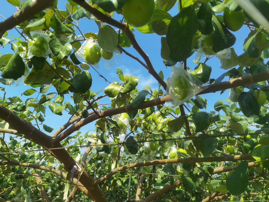 “以往是來年的二月開始摘果,現(xiàn)在一月中旬便能摘果,這得益于光照燈,增加光照時間,讓青棗提前上市,搶抓先機。”藍遠棟一邊向記者講解,一邊指向果樹上放的光照燈。記者了解到,光長村成立了合作社,青棗種植戶之間互相探討種植技術(shù),共享市場信息和銷售渠道。“除了光照燈,還增加了尼龍布,在霜凍來臨時,用尼龍布將果實蓋起來,起到保溫的效果,從而減少霜凍的傷害。”