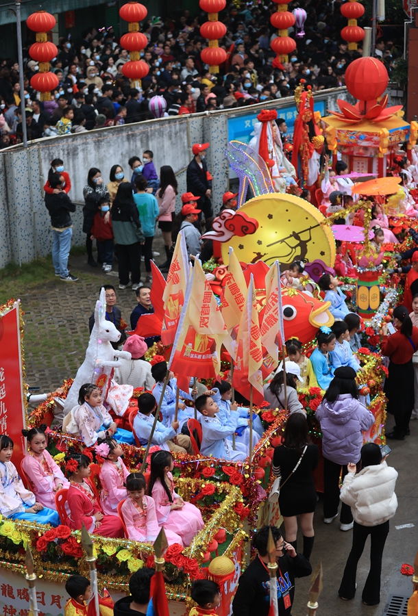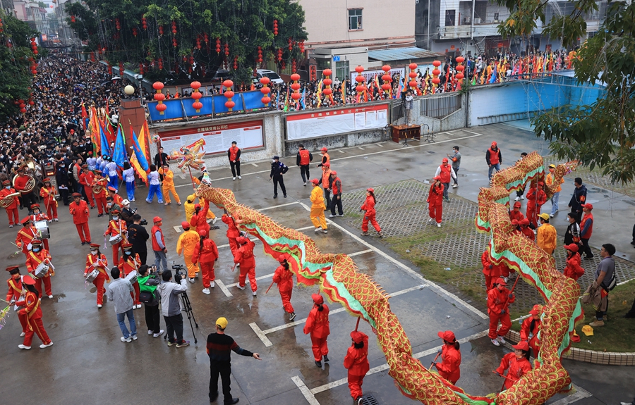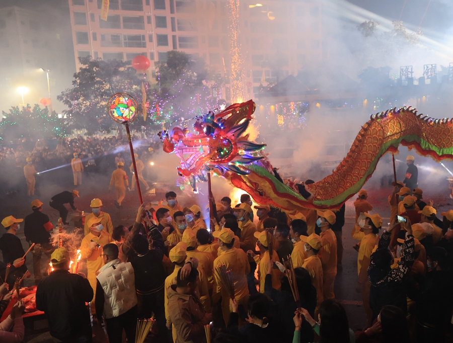 “咚咚,咚咚咚……”2月5日(農(nóng)歷正月十五),惠東縣吉隆鎮(zhèn)隆重舉行舞龍鬧元宵活動。舞龍鬧元宵是吉隆客家人的傳統(tǒng)習俗,每年農(nóng)歷正月十五、十六日兩晚,吉隆群眾都要舞龍祈求新年風調(diào)雨順、國泰民安。每逢元宵節(jié)舞龍時,家家戶戶都準備“五牲”“五貢”敬祖先,備上豐盛的菜肴,請親朋好友來熱鬧一番。據(jù)悉,吉隆元宵舞龍已傳承400多年,2015年,入選廣東省第六批非物質(zhì)文化遺產(chǎn)代表作名錄。