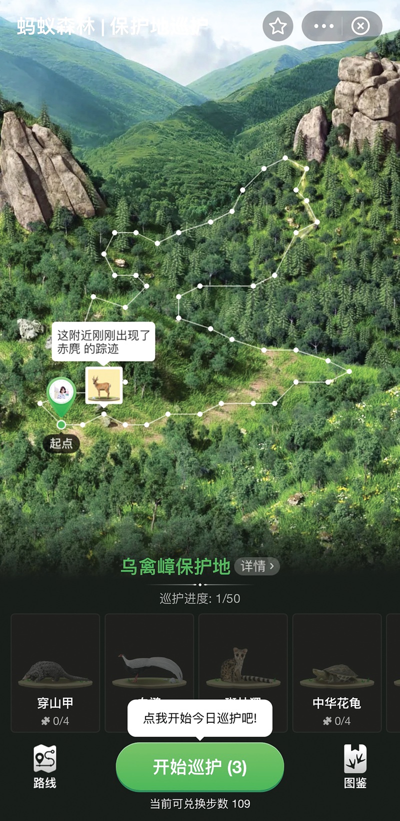 保護(hù)地巡護(hù)是守護(hù)自然生態(tài)以及生物多樣性的重要一環(huán)。螞蟻森林的每塊保護(hù)地都有1批巡護(hù)隊(duì)員,通過(guò)自己的努力維持當(dāng)?shù)氐淖匀簧鷳B(tài)。通過(guò)保護(hù)地線上巡護(hù),群眾可以作為一名“線上巡護(hù)員”參與其中,真切地去感受保護(hù)地的線下巡護(hù)工作。