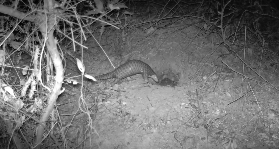 中華穿山甲(紅外相機(jī)拍攝畫面)。