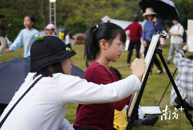 活動現(xiàn)場,帳篷營地人頭攢動,游客接踵而來,熱鬧非凡。在繪畫區(qū),十幾對家庭圍著畫架,或眺望遠(yuǎn)方,或面朝大南山,在一陣陣春風(fēng)吹拂中,一幅幅可愛的畫作在筆下誕生;在美食集市和特色產(chǎn)品展銷區(qū),炸雞排、炸牛奶、魚蛋等美食陸續(xù)上架,綠棋楠沉香、九龍御龜園龜苓膏、喜象洗護(hù)產(chǎn)品和新甘香番薯粉絲等本地特產(chǎn)更是吸引了游客目光,不少游客還現(xiàn)場購買。午后時光,帳篷下的游客紛紛圍爐煮茶、漫談閑聊,遠(yuǎn)離城市的喧囂與浮華,盡情享受“偷得浮生半日閑”的樂趣。