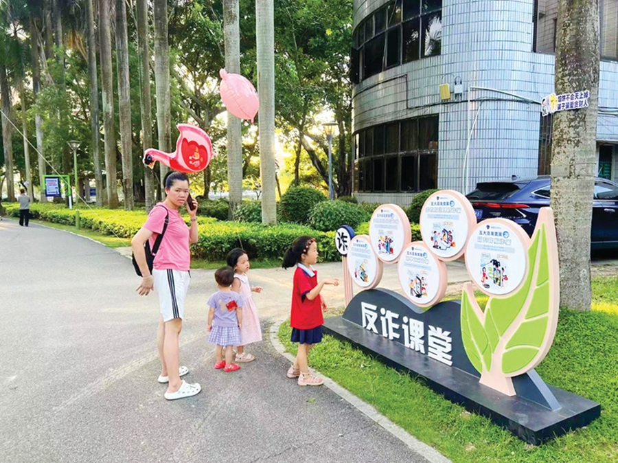 小朋友在南湖反詐主題公園觀看“反詐課堂”。