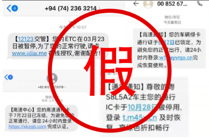 2、ETC方面的問題要通過官方渠道處理,切勿通過來歷不明的短信、電話、網(wǎng)頁鏈接辦理。