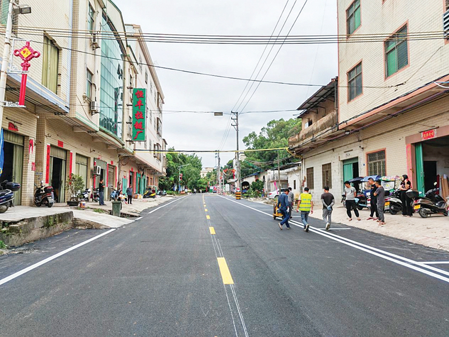 望京洲村村道鋪上瀝青。 惠州日報記者藍(lán)斐菲 特約通訊員蔡觀庭 攝