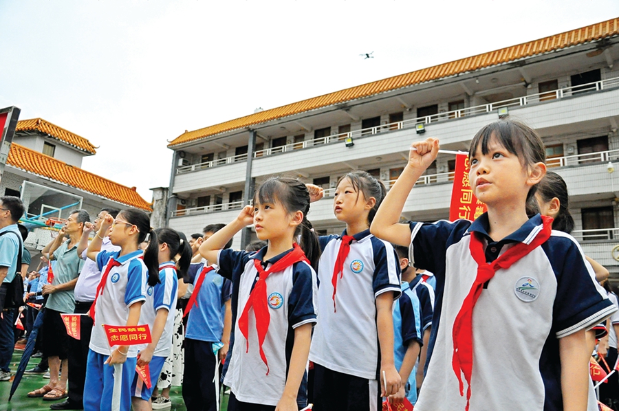 共同宣誓遠(yuǎn)離毒品。 惠州日?qǐng)?bào)記者蔡偉健 攝