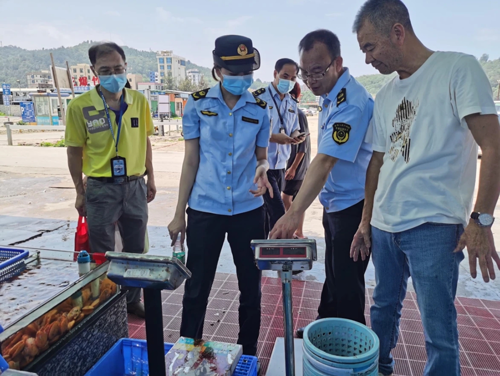 執(zhí)法人員在惠東港口濱海旅游度假區(qū)的海鮮市場(chǎng)開展“清秤大行動(dòng)”。惠州日?qǐng)?bào)記者洪鵲兒 攝