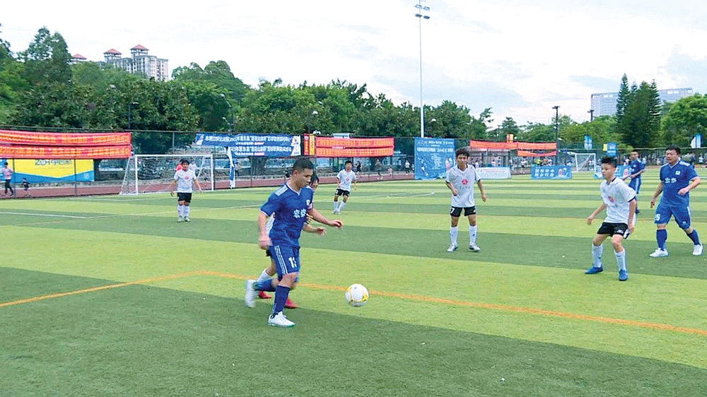 球員們?cè)谧闱驁?chǎng)上激烈角逐。惠州日?qǐng)?bào)記者蔡偉健 特約通訊員李文聰 攝