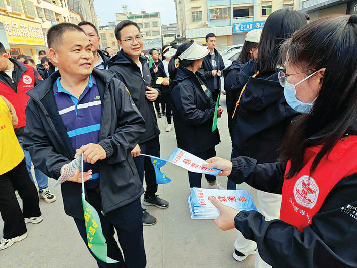 志愿者派發(fā)禁毒宣傳資料。 惠州日報(bào)記者蔡偉健 特約通訊員朱建文 通訊員郭曉鋒 攝