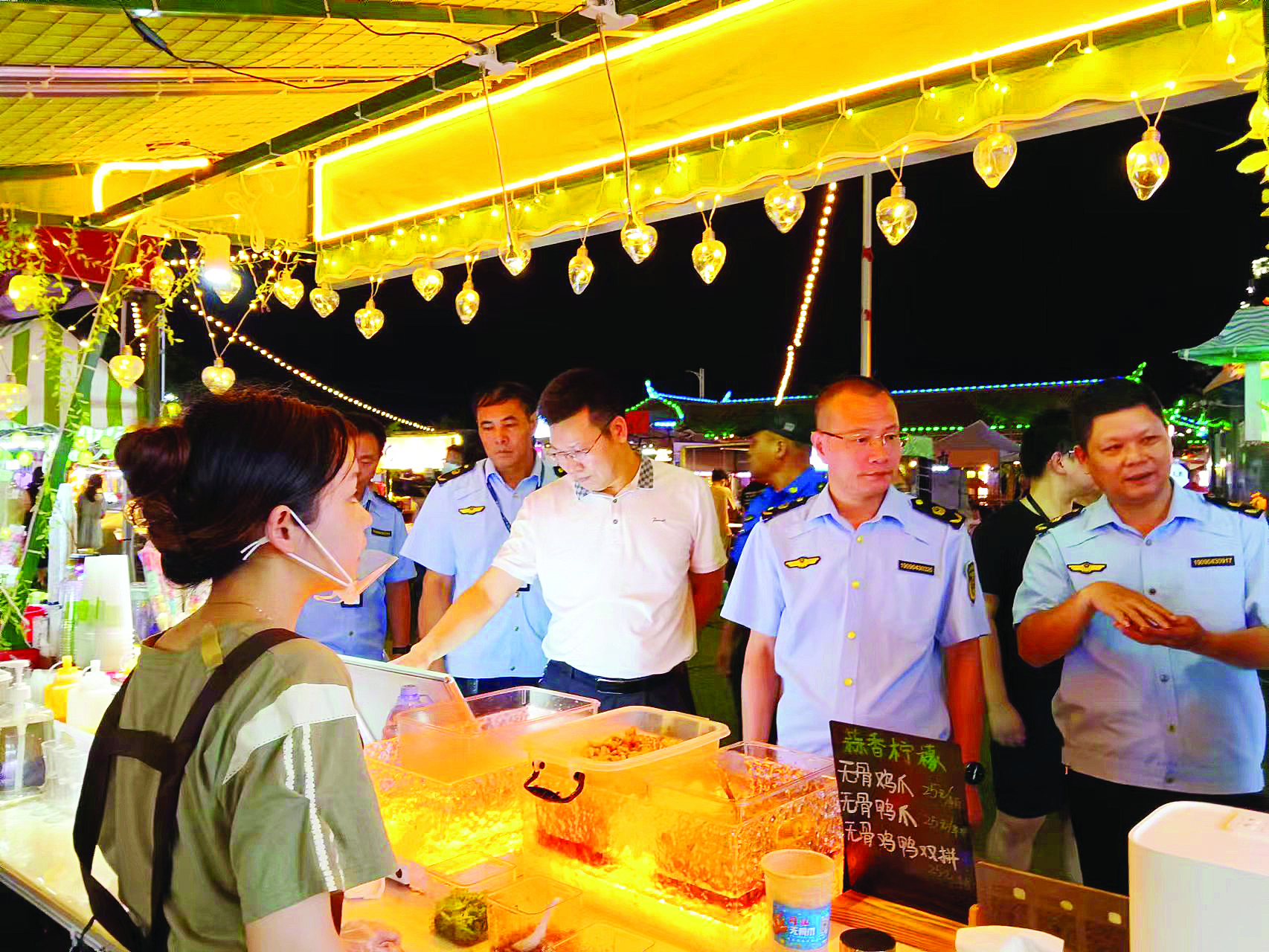 惠東縣食藥安辦組織縣市場(chǎng)監(jiān)管局、縣城管執(zhí)法局等單位對(duì)夜市進(jìn)行食品安全檢查。