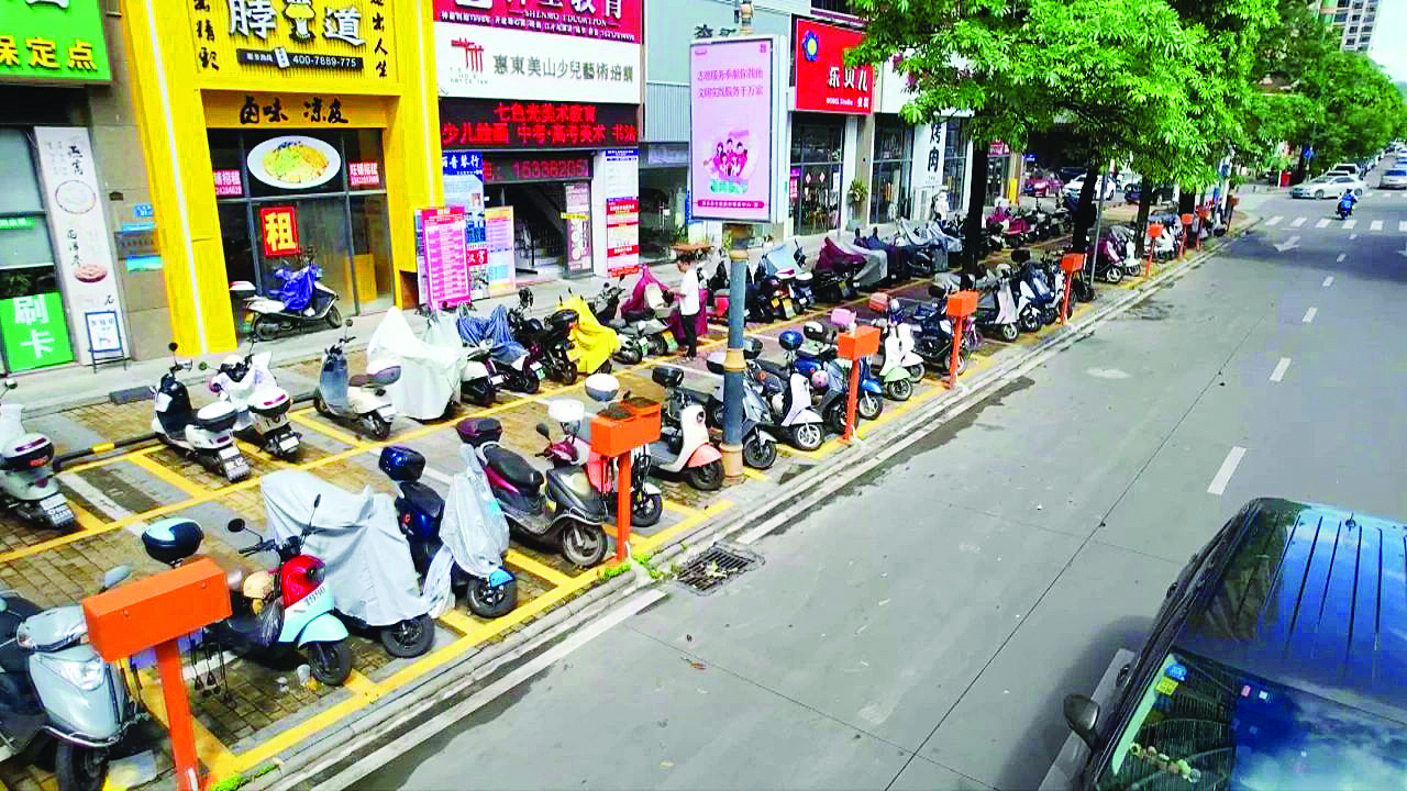 惠東縣城一小區(qū)外電動自行車規(guī)范停放。 惠州日報記者蔡偉健 特約通訊員葉衍達 攝