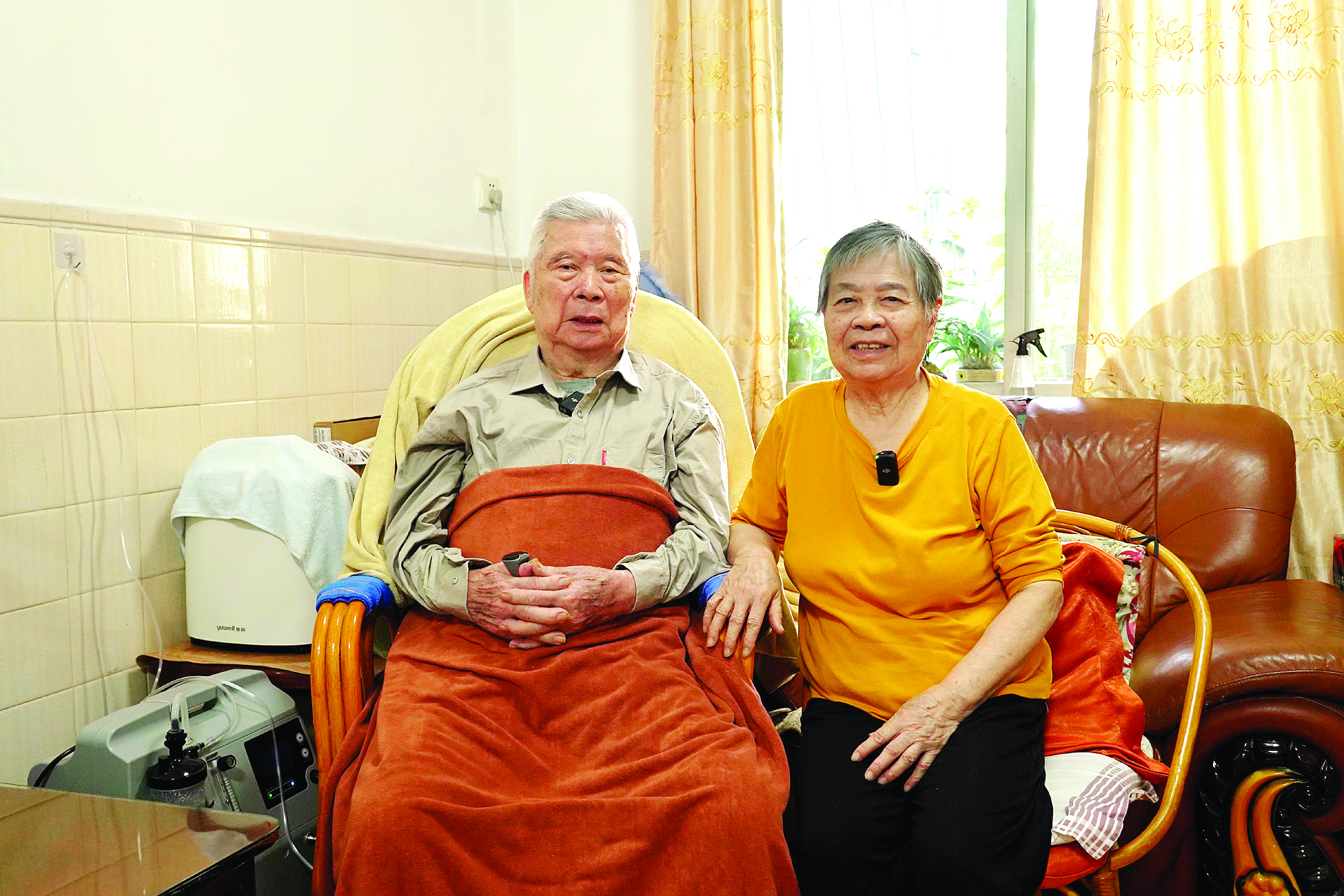 臨走的時(shí)候,記者提議給兩位老人合影。窗外陽(yáng)光明亮,房間里兩位老人在窗前相依而坐,讓人不禁想起“執(zhí)子之手,與子偕老”這句傳誦數(shù)千年的愛情詩(shī)句。