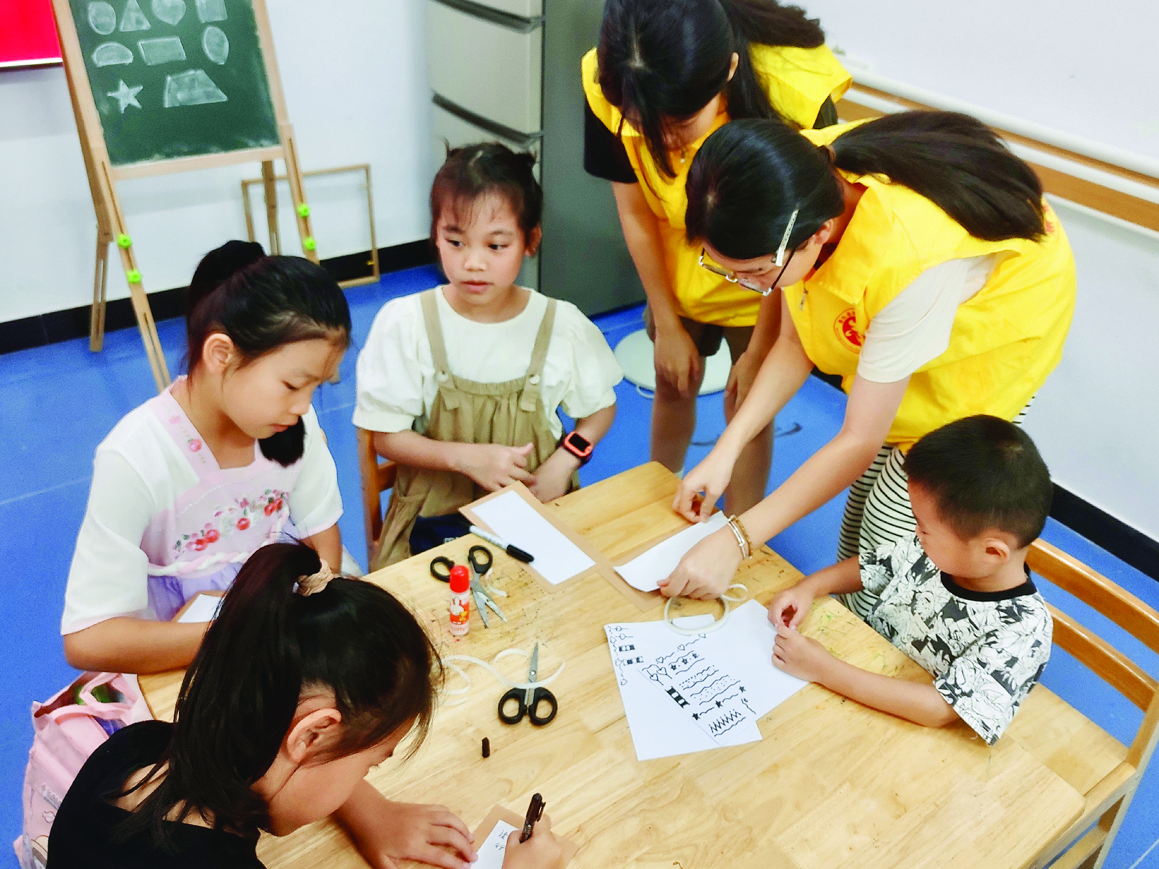 孩子們在志愿者的輔導下制作書簽。惠州日報記者洪鵲兒 通訊員肖燕輝 周秀容 攝