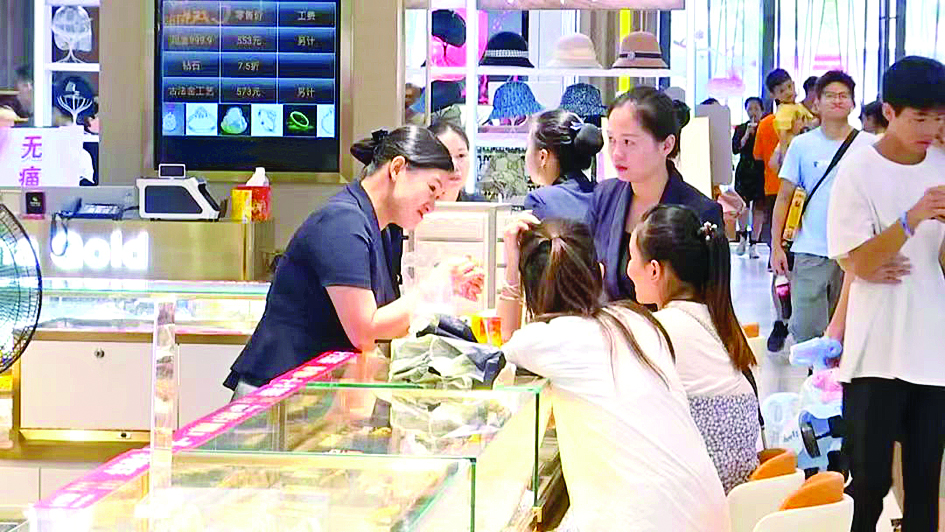商鋪展臺(tái)駐留著咨詢市民和購買者。
