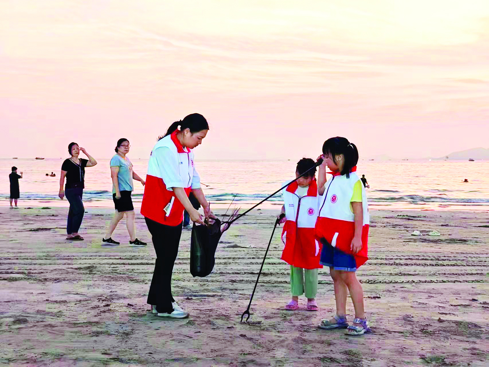 志愿者參與凈攤撿跑助力文明旅游。