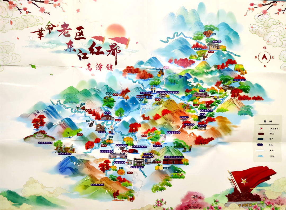 在系列文創(chuàng)產(chǎn)品中,最引人注目的當屬高潭鎮(zhèn)推出了線上智慧語音導覽和水墨畫風格的手繪地圖宣傳冊。“手繪畫冊以紅色為主色調(diào),集合了全鎮(zhèn)吃、住、娛、樂、購等信息,讓大家了解高潭風土人情的同時,也可以把這幅畫冊作為紀念品收藏起來,掃描圖冊上的二維碼便能進入智慧語音導覽。”叢琳說。
