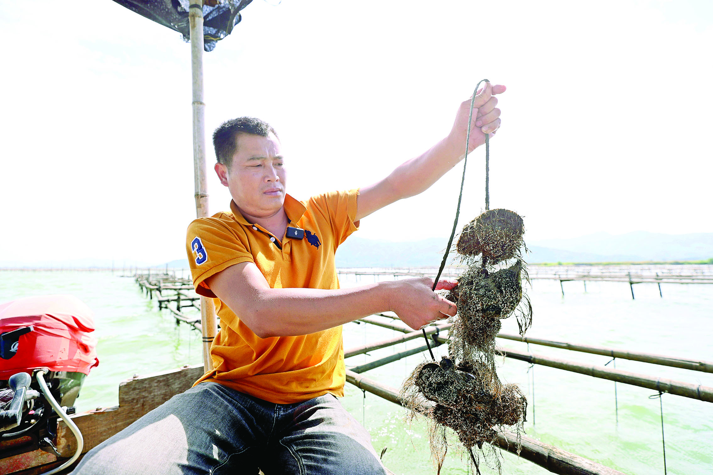 駕駛漁船在蠔田收蠔。