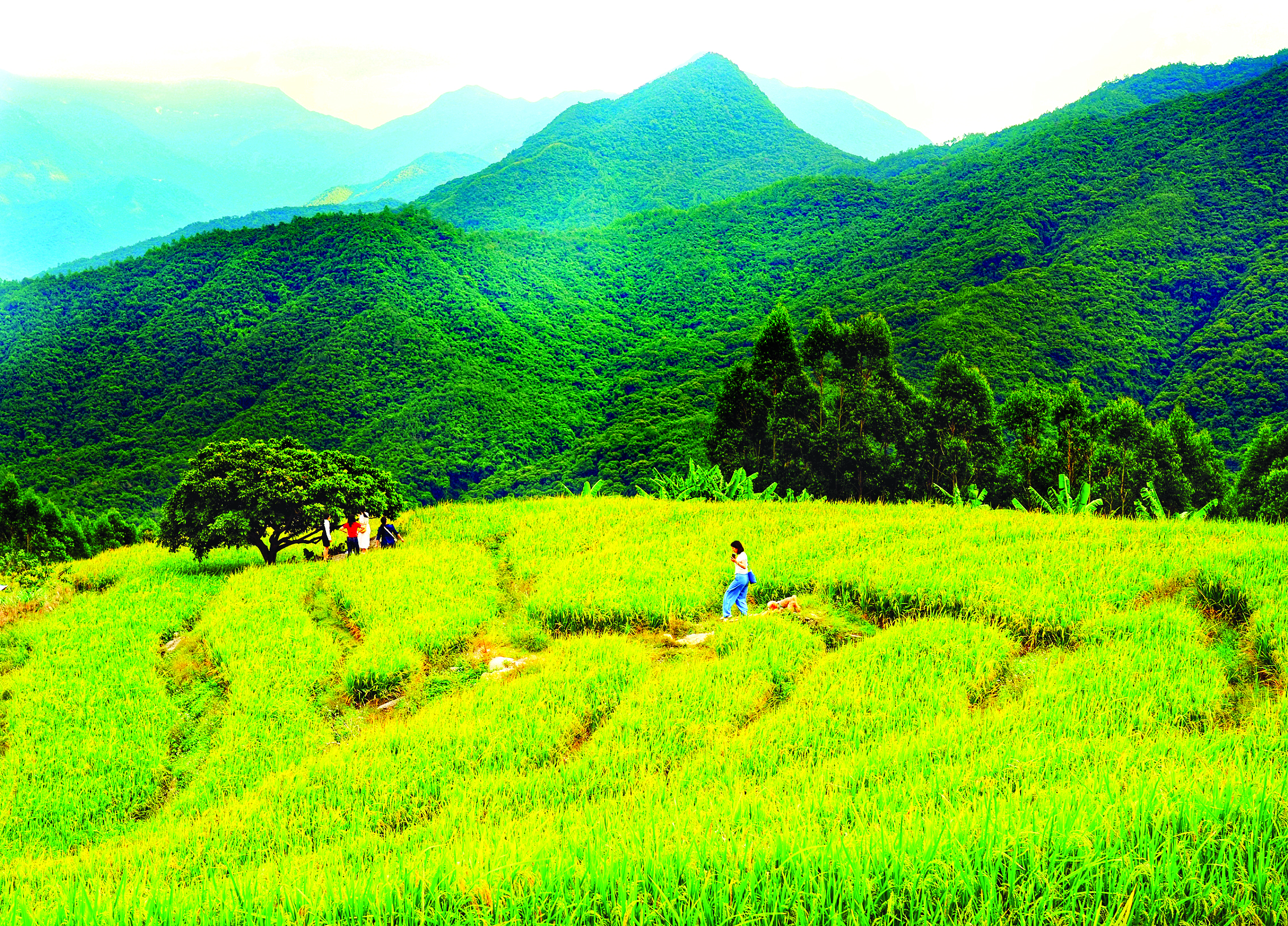 你見(jiàn)過(guò)惠州的梯田嗎?就在惠東縣九龍峰旅游區(qū)角峰山上。層層疊疊的梯田里,稻谷即將成熟。梯田猶如一條條飄帶,纏繞在山間,形成壯美畫(huà)卷。遠(yuǎn)遠(yuǎn)望去,金黃的稻田與綠樹(shù)、青山相互映襯,美不勝收,吸引眾多游客前來(lái)打卡拍照。