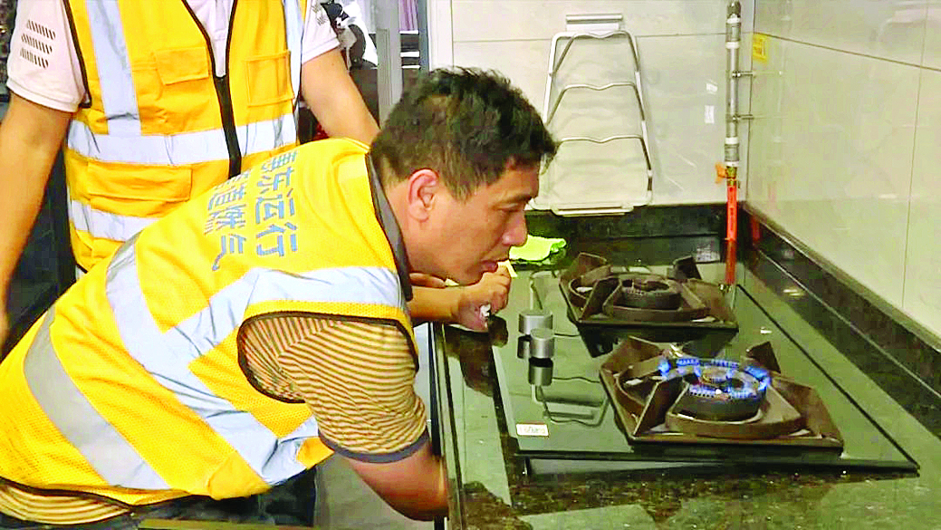 天然氣置換改造完成,工作人員為用戶點火。 惠州日報記者蔡偉健 通訊員寇濱麒 鐘祖濤 攝