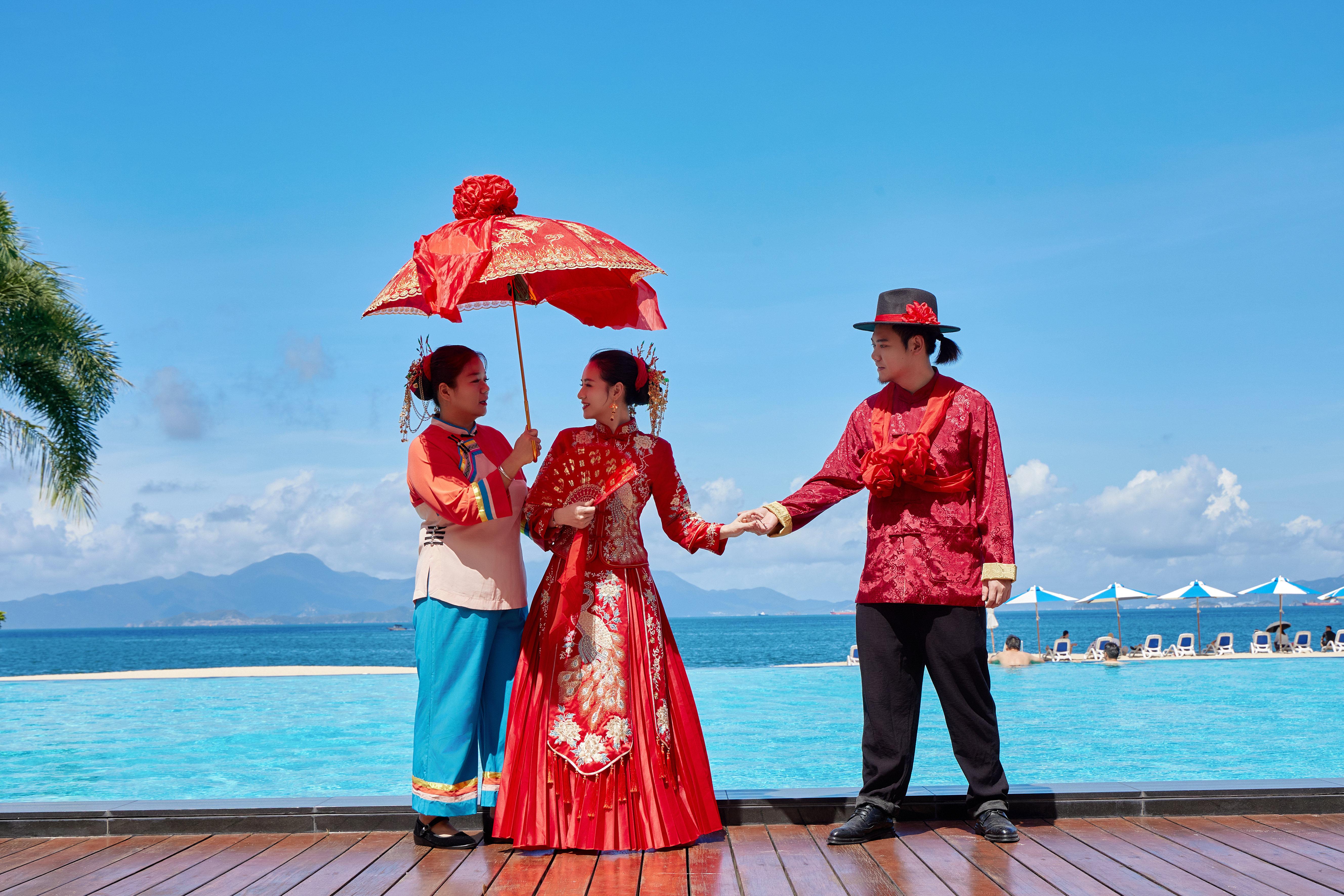 游客體驗漁家婚俗旅拍。惠州日報記者洪鵲兒 通訊員巽寮宣 攝