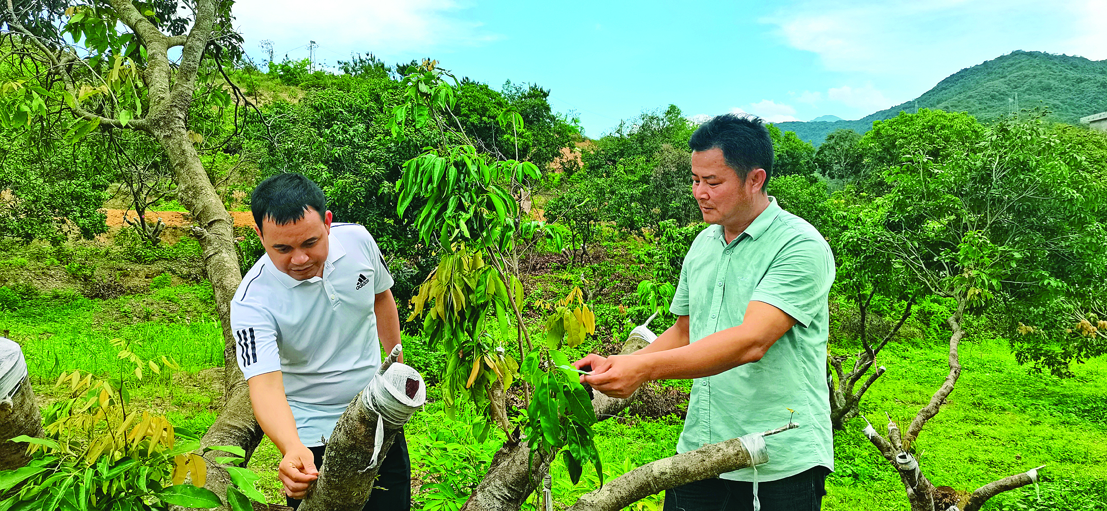 鎮(zhèn)村干部查看荔枝生長情況。惠州日報記者洪鵲兒 攝