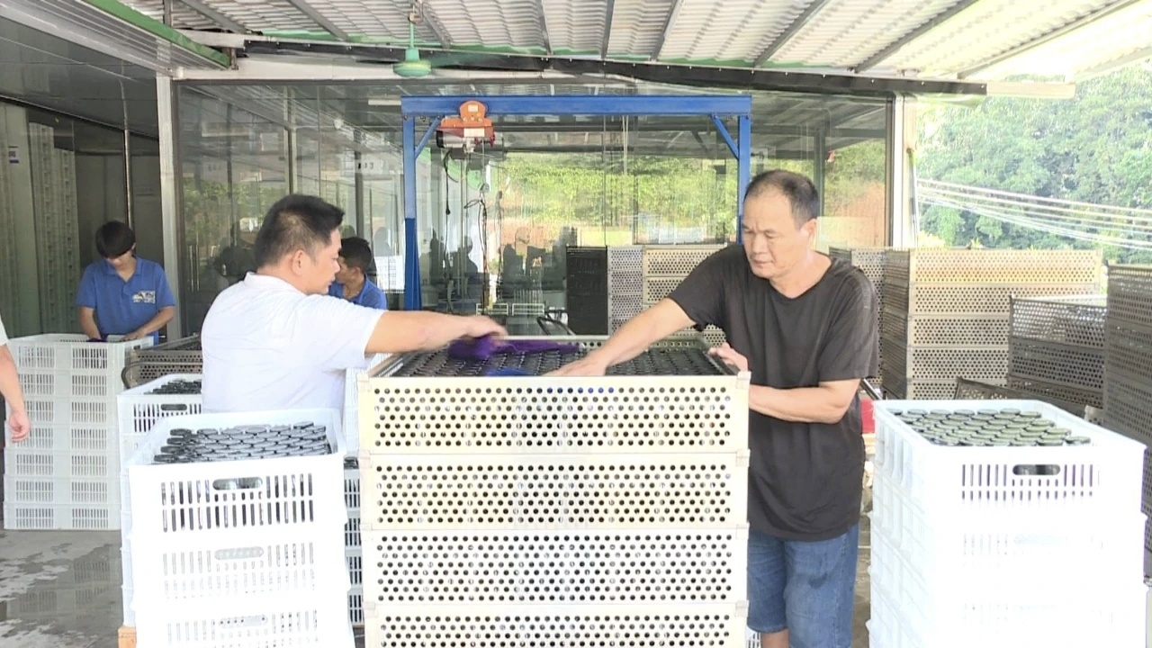 劉明輝介紹,其目前生產(chǎn)的龜苓膏是采用8至15年以上的老龜龜板,搭配純中藥精心熬制而成。制作過程中僅放入中藥,經(jīng)8小時慢火熬制成龜膠,再調(diào)味制成龜苓膏。劉明輝介紹,依托優(yōu)質(zhì)水源和政府支持,企業(yè)將產(chǎn)品單價從30元降至10元,推出三檔產(chǎn)品,日產(chǎn)量達9600瓶,銷往全國。如今,呂屋坪村的“石金錢龜”龜苓膏產(chǎn)業(yè)已結(jié)出豐碩成果,這條特色產(chǎn)業(yè)發(fā)展之路,不僅盤活了荒山資源,更帶動了村民增收。