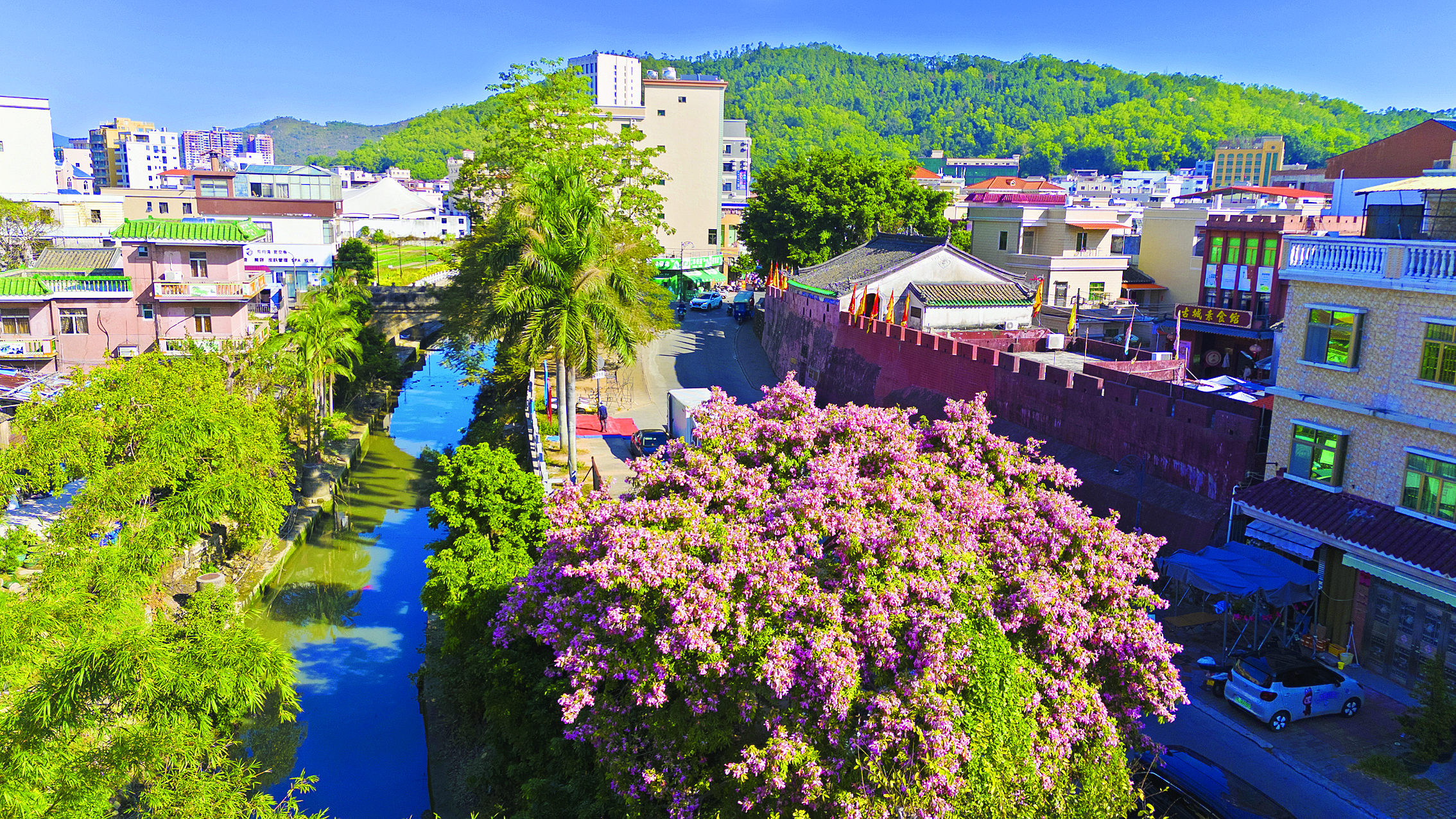 日前,位于惠東縣平海古城西門附近的美麗異木棉迎來盛花期,古色古香的城樓與盛放的粉色繁花相映成趣,為這座嶺南文化“活化石”注入冬日生機(jī)。平海古城現(xiàn)存四門城樓及眾多明清宅院,冬日繁花不僅裝點(diǎn)了磚縫苔痕,更吸引游客感受“城在花中,花在景中”的獨(dú)特韻味。