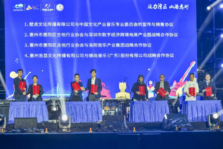 活動現(xiàn)場,惠陽吉他行業(yè)協(xié)會與洛陽音樂產(chǎn)業(yè)集團、深圳市數(shù)字經(jīng)濟跨境電商產(chǎn)業(yè)園,惠州吉荔文化傳播有限公司與德尚音樂(廣東)股份有限公司,壁虎文化傳播有限公司與中國文化產(chǎn)業(yè)音樂專業(yè)委員會,正式簽署戰(zhàn)略合作協(xié)議,旨在加強與吉他行業(yè)上下游緊密合作,延伸吉他產(chǎn)業(yè)發(fā)展鏈條。
