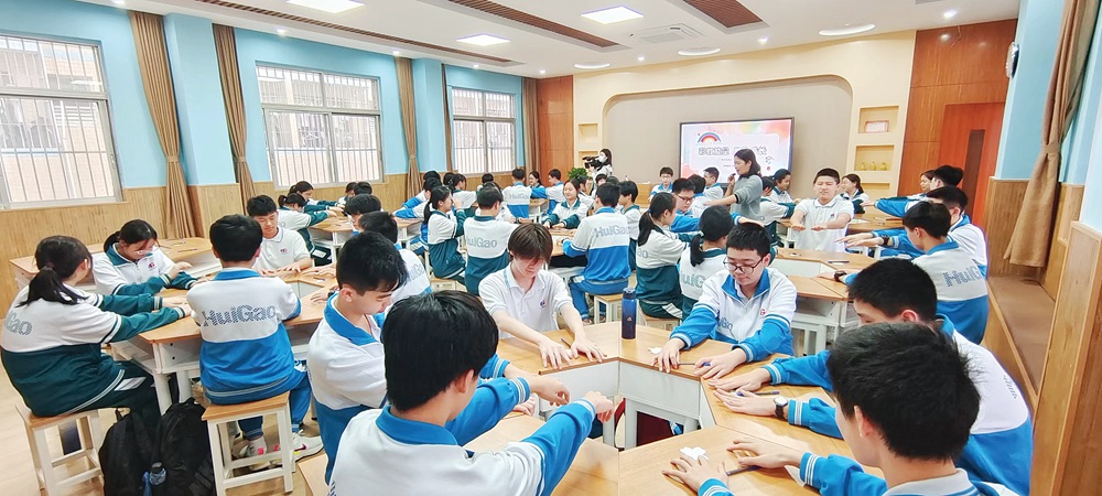 惠陽高級中學(xué)學(xué)生以班級為單位參加團(tuán)體心理輔導(dǎo)課。