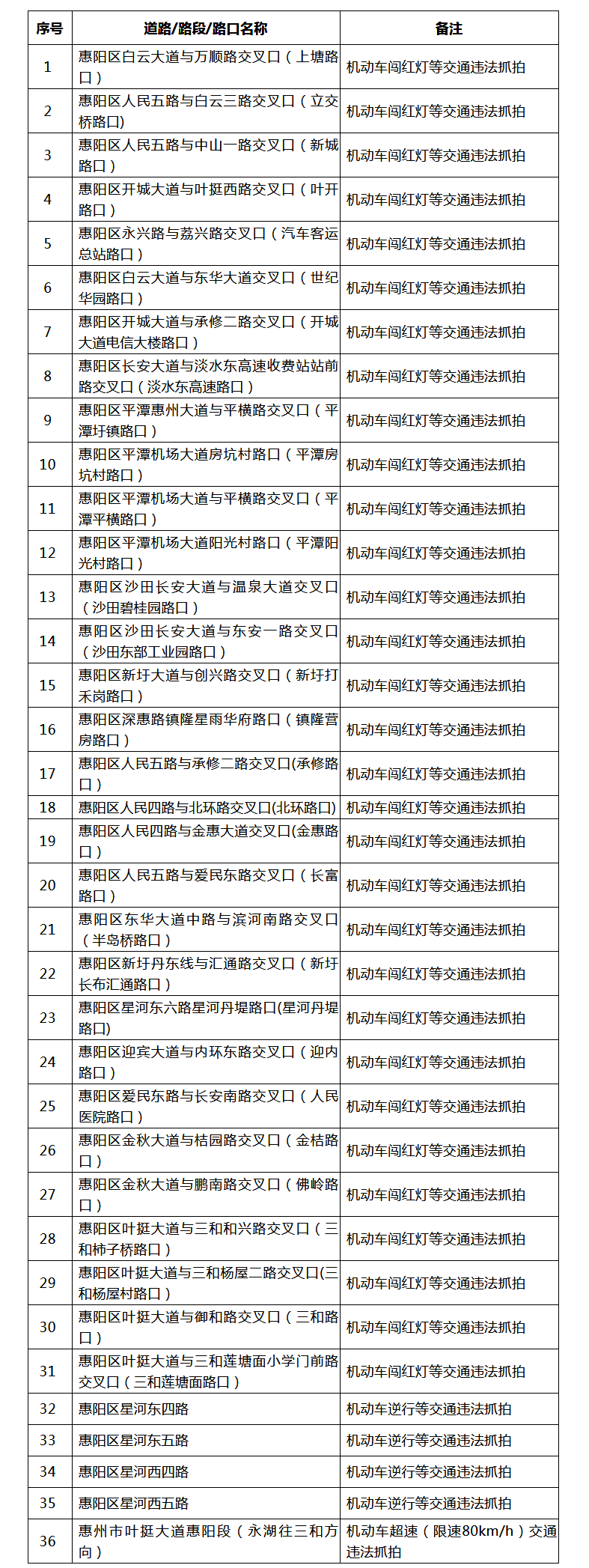 關(guān)于啟用惠陽區(qū)36個點位交通技術(shù)監(jiān)控設(shè)備的公告