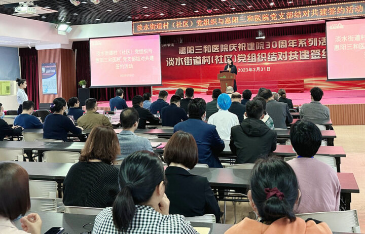 惠陽三和醫(yī)院黨支部與淡水14個村(社區(qū))黨組織結(jié)對共建。