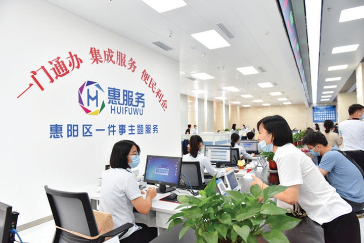 企業(yè)工作人員在惠陽區(qū)政務(wù)服務(wù)大廳咨詢業(yè)務(wù)。 惠州日報記者許文昌 通訊員文學(xué)群 攝
