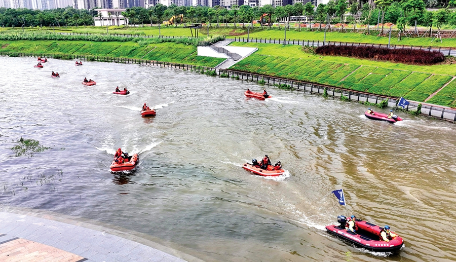 防汛救災(zāi)應(yīng)急演練現(xiàn)場。惠州日報(bào)記者許文昌 攝