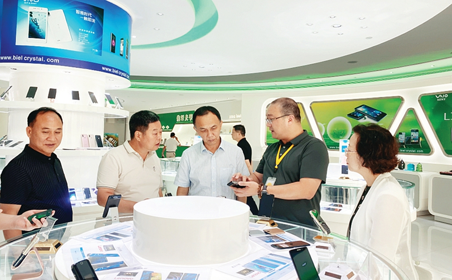考察組在伯恩光學(惠州)有限公司了解企業(yè)產(chǎn)品。 惠州日報記者許文昌 通訊員劉曼麗 攝