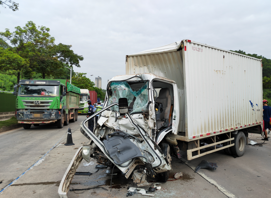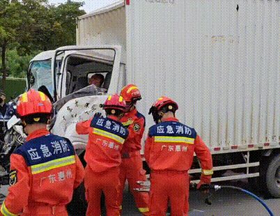 現(xiàn)場(chǎng)消防員發(fā)現(xiàn)是一輛小型貨車(chē)追尾撞上了一輛泥頭車(chē),貨車(chē)主駕駛跟副駕駛都被困在駕駛室,消防力量立即展開(kāi)救援。