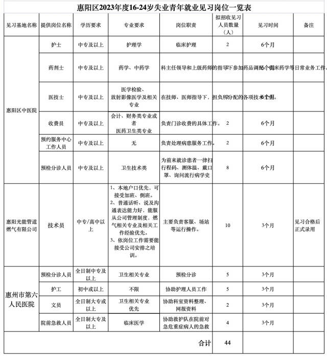 近日,惠陽區(qū)人社局發(fā)布公告,為深入實施離校未就業(yè)畢業(yè)生就業(yè)促進計劃,積累實踐經(jīng)驗、增強高校畢業(yè)生就業(yè)能力,根據(jù)國家省有關就業(yè)見習工作要求,現(xiàn)發(fā)布惠陽區(qū)285個高質量見習崗位,歡迎有見習意愿的離校2年內未就業(yè)高校畢業(yè)生和16—24歲失業(yè)青年踴躍報名。