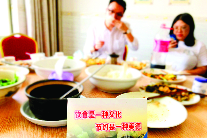 餐館通過桌卡提醒客人節(jié)儉惜食。