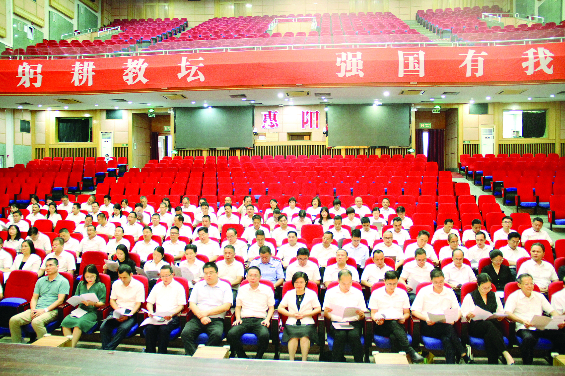 會議強(qiáng)調(diào),廣大教師要始終牢記“為黨育人、為國育才”的初心使命,堅持把優(yōu)先發(fā)展教育事業(yè)作為推進(jìn)惠陽各項事業(yè)發(fā)展的先手棋,推動惠陽教育不斷朝著更高質(zhì)量、更加公平、更有效率的方向前進(jìn),為推動惠陽高質(zhì)量發(fā)展、加快打造“智造高地·活力惠陽”書寫更多教育擔(dān)當(dāng)。抓基礎(chǔ)、提質(zhì)量,努力辦好人民滿意的教育;重師德、強(qiáng)專業(yè),牢記立德樹人、鑄魂育人的初心使命;重責(zé)任、聚合力,努力營造尊師重教好氛圍。