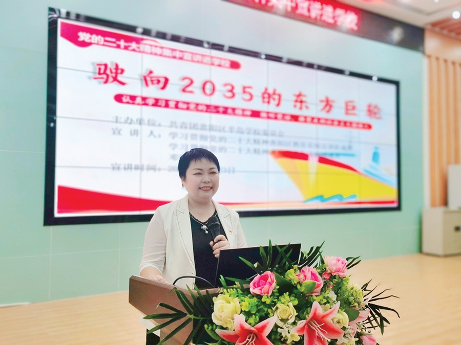 “思想是日常行為的驅(qū)動(dòng)力。”鄧曉慧深耕團(tuán)委工作,通過深化思政課程,把青少年思想道德建設(shè)工作抓實(shí)、抓細(xì)。為給青少年講好團(tuán)課、上好黨課,鄧曉慧讓抽象的理論生動(dòng)起來、活起來,讓學(xué)生們聽得懂、看得到、學(xué)得著。她工作之余查詢大量資料、梳理各種文案,反復(fù)制作視頻音頻,創(chuàng)作錄制的微黨課《一個(gè)為學(xué)習(xí)而設(shè)的節(jié)日》《延安那些趣事》在2021年5月惠州市“學(xué)黨史、強(qiáng)思政、育新人”100節(jié)微黨課評(píng)選活動(dòng)中榮獲一等獎(jiǎng);創(chuàng)作錄制的微團(tuán)課在2021年5月惠州市“百佳微團(tuán)課”評(píng)選活動(dòng)中榮獲二等獎(jiǎng)。