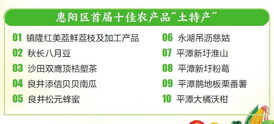 惠陽(yáng)農(nóng)業(yè)資源豐富,農(nóng)產(chǎn)品種類繁多,農(nóng)業(yè)農(nóng)村發(fā)展前景和潛力巨大。據(jù)介紹,惠陽(yáng)以惠州市慶祝2023年“中國(guó)農(nóng)民豐收節(jié)”為契機(jī),開展第一屆十佳農(nóng)產(chǎn)品“土特產(chǎn)”評(píng)選活動(dòng),旨在挖掘本地“土”“特”“優(yōu)”農(nóng)產(chǎn)品,促其走向更廣闊的市場(chǎng)。其評(píng)選周期為每三年一屆,每屆舉辦一次評(píng)選活動(dòng)。