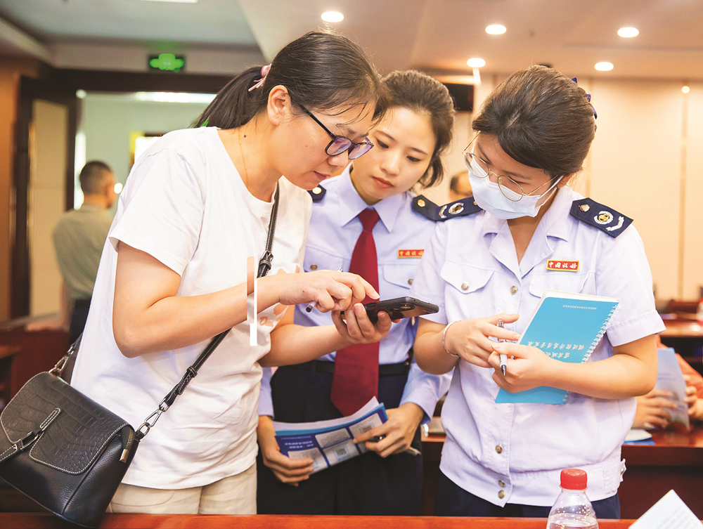 稅務(wù)人員作現(xiàn)場輔導(dǎo)。