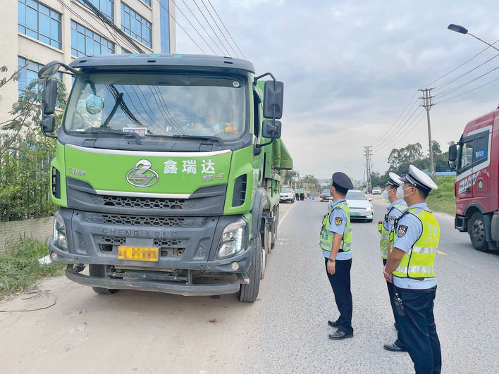 新圩開展車輛超載超限專項(xiàng)整治。 惠州日報記者黃尉宏 通訊員張智軍 攝