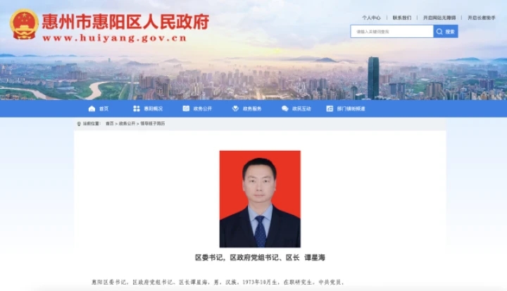 剛剛,記者從惠陽區(qū)人民政府信息網“領導之窗”欄目獲悉,譚星海上任惠陽區(qū)委書記。