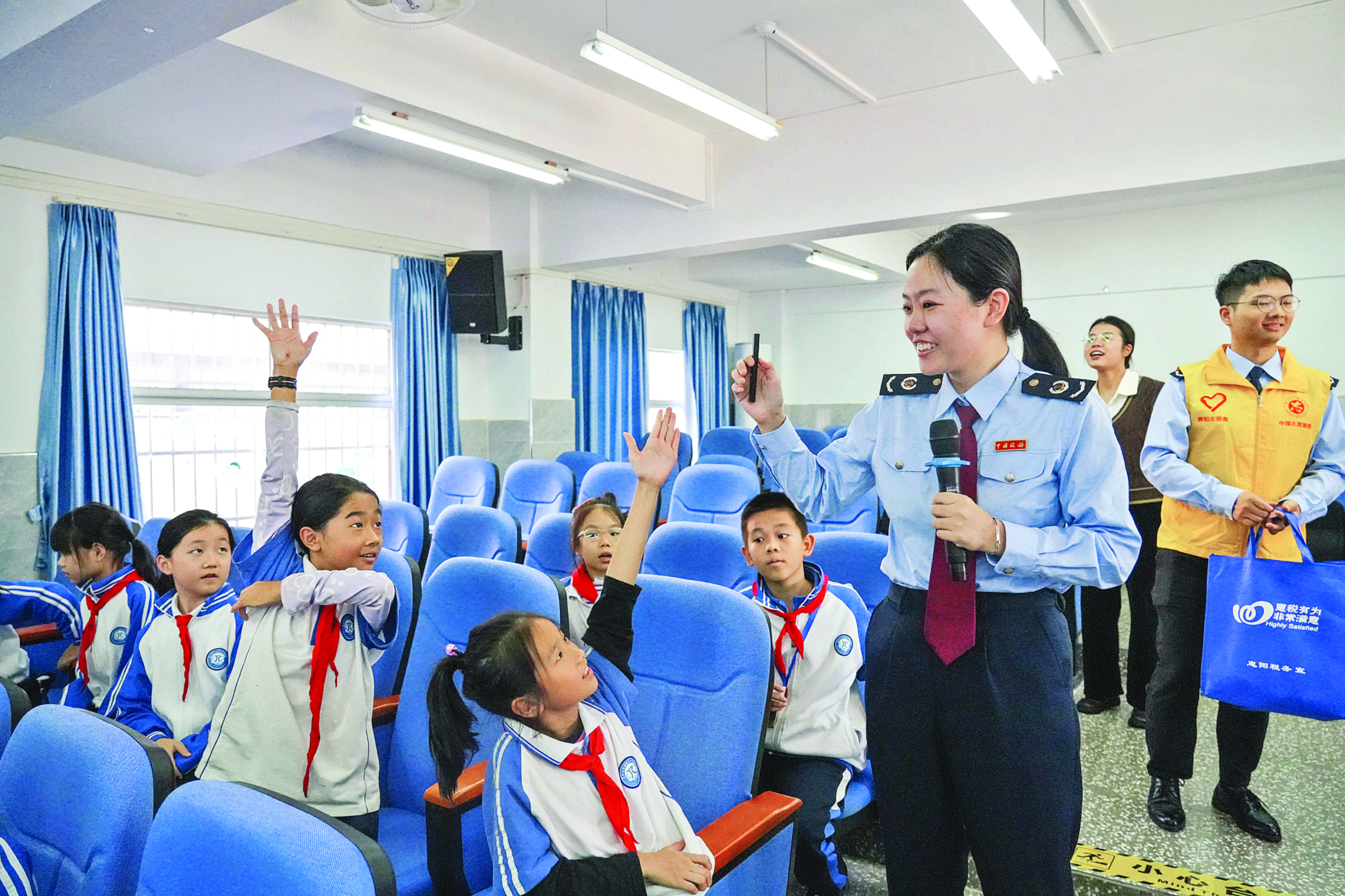 在隨后開展的有獎(jiǎng)問答環(huán)節(jié)中,同學(xué)們爭(zhēng)先恐后地?fù)尨穑惙ㄕn堂氣氛活躍。“原來我們這么漂亮的課室,建設(shè)資金來源主要是稅收,回去要和爸爸媽媽講,只有依法納稅,大家的生活才會(huì)更美好。”惠陽區(qū)淡水第十二小學(xué)四年級(jí)(2)班的黃星星高興地說。
