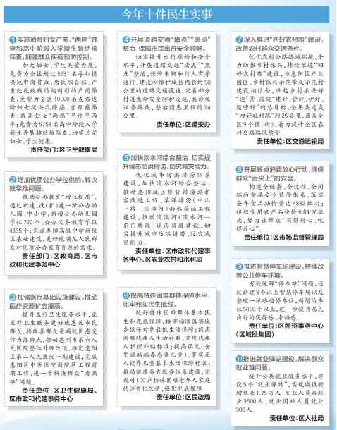 《方案》中指出,惠陽區(qū)2024年十件民生實事是區(qū)政府向全區(qū)人民作出的莊嚴承諾,是必須不折不扣落實的政治任務。要求各相關項目責任單位要把十件民生實事工作作為建設誠信政府的重要任務來抓,將十件民生實事作為今年工作的重中之重,結合實際,針對各項民生實事的特點,因地制宜、因事制宜,科學合理制定具體實施方案,細化工作舉措,創(chuàng)新工作方法。
