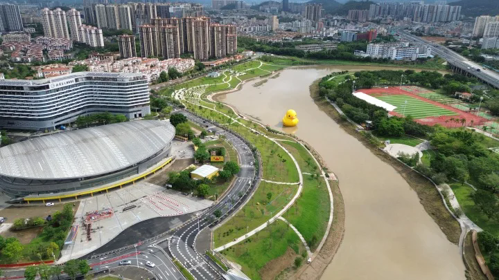 大黃鴨已經(jīng)亮相淡水河。惠報全媒體記者 許文昌 攝