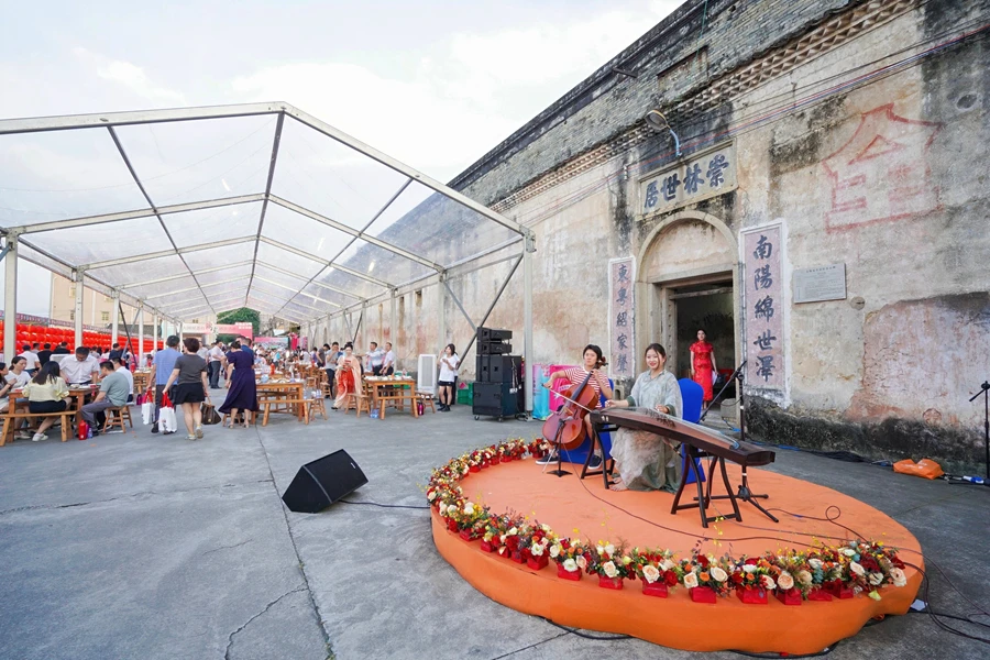 家宴是待客的最高禮遇,它不僅僅是品嘗餐桌上的食物,更是一種情感交流和文化傳承。6月21日上午,惠州市2024年荔枝產(chǎn)銷對接暨第十五屆惠陽鎮(zhèn)隆荔枝文化系列活動啟動儀式舉行,RCEP廣東惠州(鎮(zhèn)隆)荔枝交易中心正式開售。當(dāng)晚,惠陽鎮(zhèn)隆在廣東第二大、惠州最大的客家圍屋——崇林世居,設(shè)家宴款待各界來賓和當(dāng)?shù)剜l(xiāng)賢。