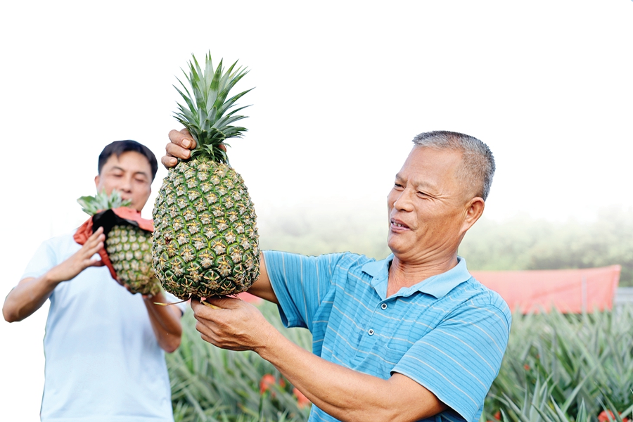 眼下正是鳳梨采摘旺季,樓角村采用批發(fā)和入園采摘相結(jié)合的銷售模式,迎來了一批又一批客流,鳳梨價(jià)格高達(dá)每斤10元。村民王叔家種了3畝鳳梨,他說等今年賣出好價(jià)錢,明年就擴(kuò)大種植面積。